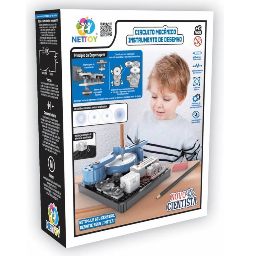 Desperte o engenheiro e o artista que há em seu filho com o "Novo Cientista - Circuito Mecânico e Instrumento de Desenho" da Nettoy! Este kit inovador, recomendado para crianças a partir de 6 anos, permite explorar princípios de engenharia enquanto cria desenhos fascinantes. Uma forma divertida e interativa de estimular a criatividade e o raciocínio lógico.
